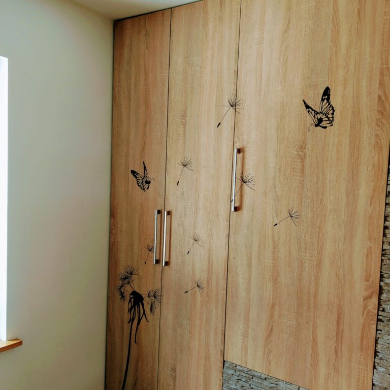 Oprócz kuchni na wymiar oferujemy również szeroki wachlarz innych mebli wykonywanych na zamówienie – od zabudów wnęk i szaf przesuwnych, po garderoby i meble łazienkowe.
